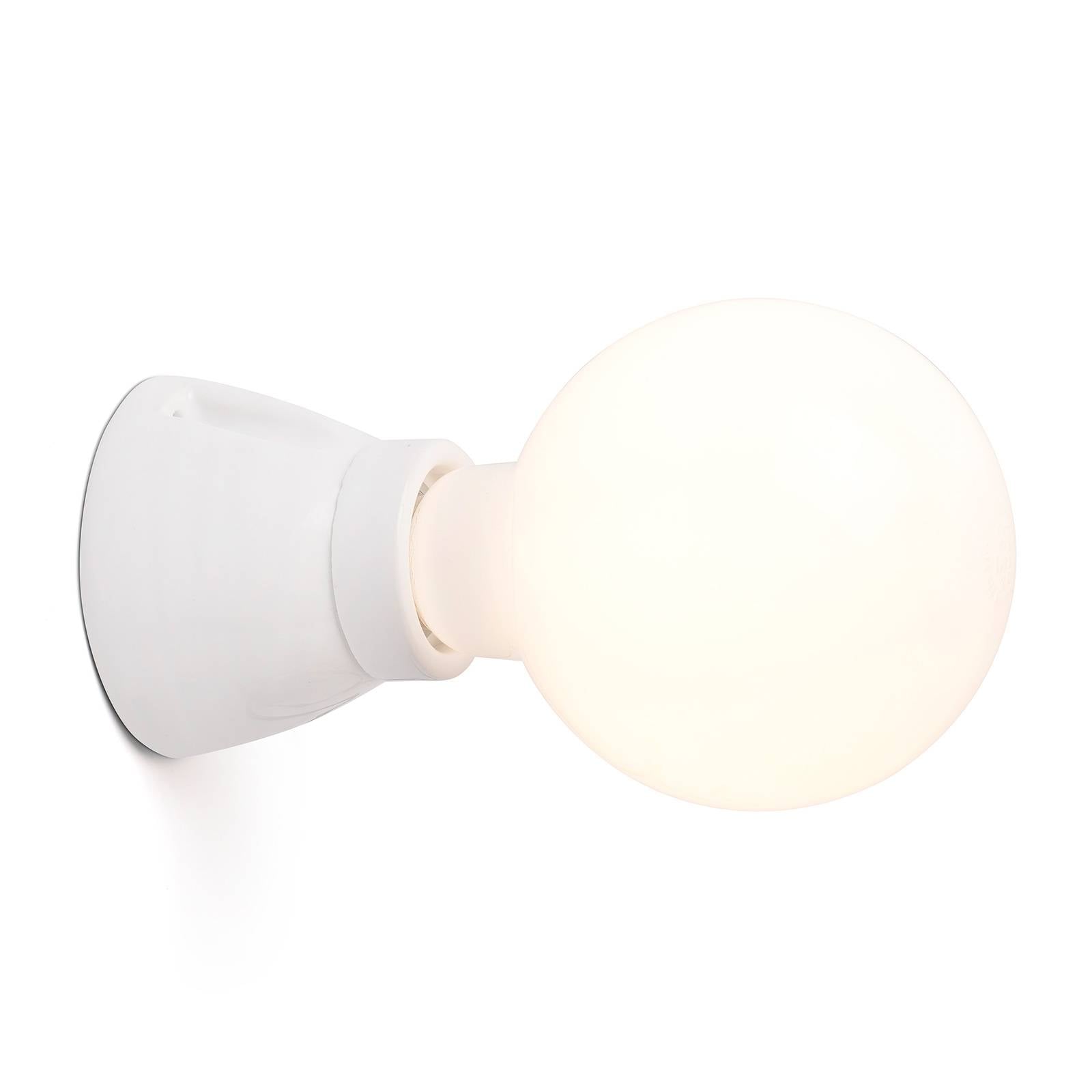 Minimalistické keramické nástenné svietidlo Kera Štruktúru svietidla možno len ťažko ďalej redukovať. Nástenné svietidlo Kera pozostáva len z telesa, ktoré slúži ako nástenný držiak a je vybavené horizontálne orientovanou objímkou E27. Kera je vyrobená z keramiky s lesklým povrchom. Funkciu a vzhľad svietidla možno určiť výberom svetelného zdroja. Od matnej kvapkovej lampy až po dekoratívnu rustikálnu lampu – Kera ladí s rôznymi variantmi v závislosti od vkusu a účelu použitia.