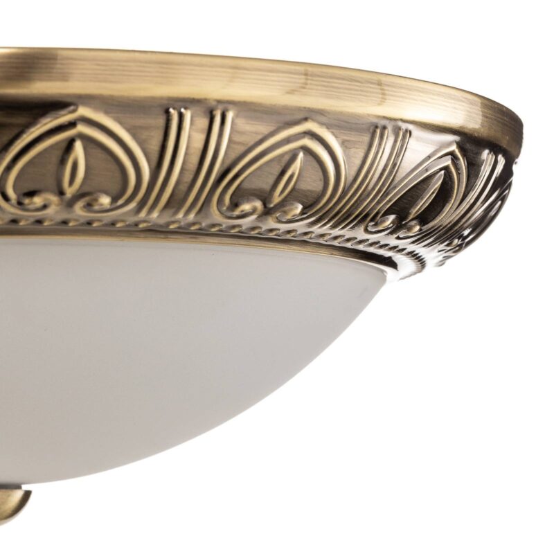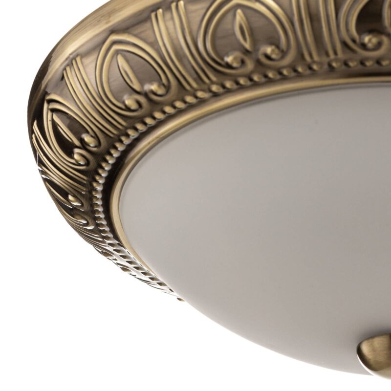 Okrúhle stropné svietidlo Lembit s priemerom 28 cm Decentne tvarované a napriek tomu nezameniteľné stropné svietidlo Lembit, ktorého biele opálové sklo je obklopené konštrukciou zo starožitnej mosadze, je zdobené fascinujúcimi vzormi. Veľké sklo svietidla zaisťuje veľkoplošný svetelný výkon, ktorý je zárukou dostatočného osvetlenia v každom obytnom priestore. Stropné svietidlo Lembit je vhodné aj na nástennú inštaláciu.
