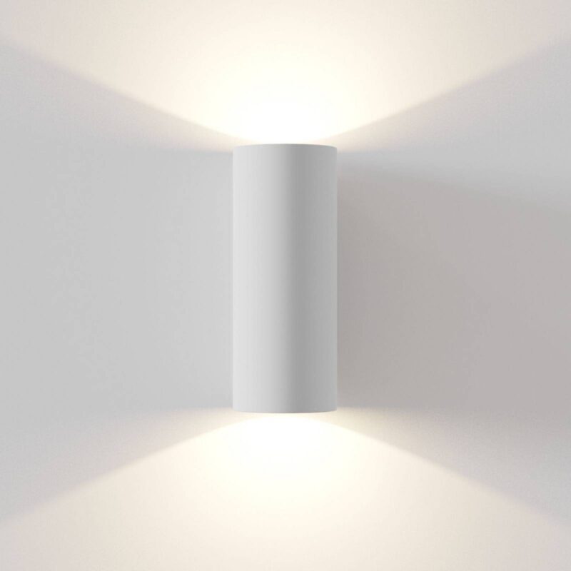 Sadrová nástenná lampa Parma pre príjemné nepriame svetlo Elegantne navrhnuté a jednoducho udržiavané nástenné svietidlo Parma má dve objímky pre žiarovky GU10, ktoré umožňujú svetelný lúč v závislosti od vrchnej a spodnej časti. V závislosti na použitom svetelnom zdroji môže svetlo napríklad poskytovať špeciálne doplnkové a okolité svetlo príjemným teplým lúčom bieleho svetla. Či už v obývacej izbe, v jedálni alebo na chodbe, malú lampu Parma možno použiť na mnoho spôsobov. Vzhľadom na použitý materiál je možné ho navrhnúť aj jednotlivo farebne, pretože omietku je možné natrieť. Či už je to jednoducho navrhnuté v bielej alebo farebnej podobe, vonkajší vzhľad sa dá ľahko prispôsobiť zariadeniu.