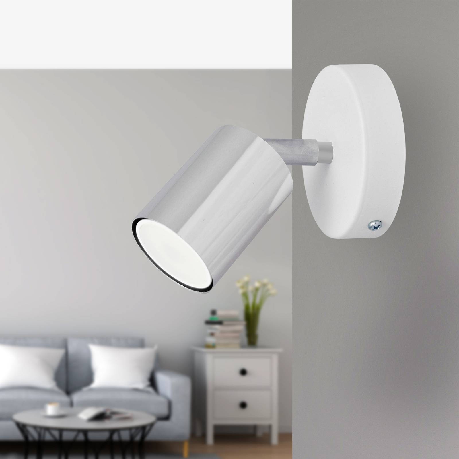 Nástenné svietidlo Tune II: bodové svetlo v chrómovej a bielej farbe Objavte nástenné svietidlo Tune II, ktoré svojím moderným štýlom a elegantnou farebnou kombináciou bielej a chrómovej farby vytvorí akcent v každej obývačke, chodbe alebo jedálni. Tento osvetľovací prvok vyrobený v Európe spája miestne remeselné spracovanie s energeticky úspornou technológiou osvetlenia. Vyskúšajte, ako jednopolohové nástenné svietidlo Tune II nielen premení vašu miestnosť, ale aj prispeje k energetickej účinnosti.