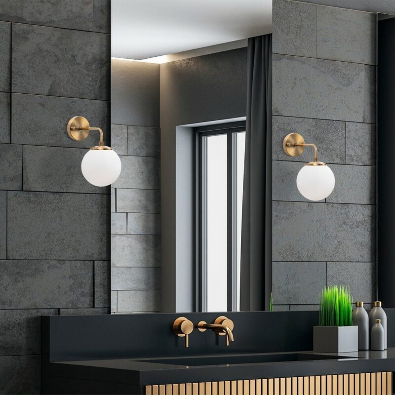 Elegantná nástenná lampa s kovovým telom v luxusnom mosadznom prevedení dodá vášmu interiéru sofistikovaný vzhľad a príjemnú atmosféru. Kruhový nástenný držiak a jemne ohnuté rameno vytvárajú harmonickú líniu, ktorá ústi do dokonale kruhového tienidla z bieleho skla. Tento matný sklenený kryt jemne rozptyľuje svetlo a vytvára príjemné, neoslňujúce osvetlenie ideálne pre obývačku, spálňu alebo chodbu.