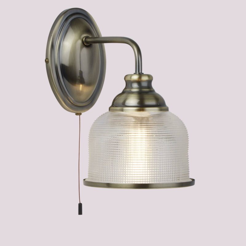 Nástenné svietidlo z holofánového skla Bistro II, starožitná mosadz