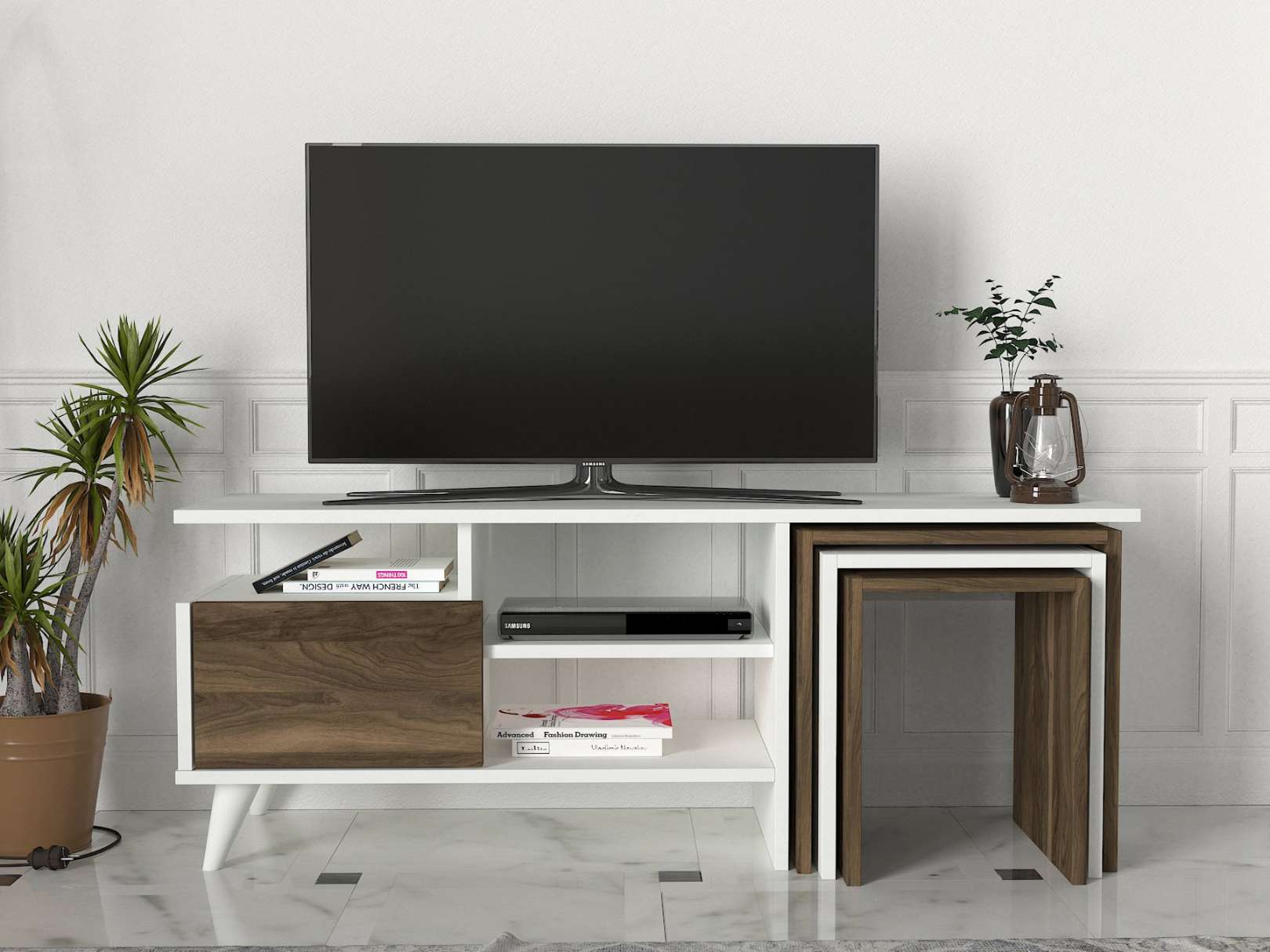 Predstavujeme NATUR, elegantnú a úzku obývaciu stenu, ktorá ideálne kombinuje bielu a orechovú farbu, prinášajúcu teplý a prírodný vzhľad do vašej obývačky. S jej minimalistickým dizajnom a praktickým vybavením poskytuje dokonalé riešenie pre moderné bývanie.Detailný opis produktuTyp tovaru: Obývacia stenaMateriál: Odolné LTD s hrúbkou 18 mm, garantujúce stabilitu a dlhú životnosť.Farba: Kombinácia bielej a orechovej farby dodáva zostave teplý, ale moderný vzhľad, ľahko zladiteľný s ďalším interiérom.Vybavenie: Zahŕňa regálik, ktorý je praktický na uskladnenie kníh, dekorácií alebo multimédií.Zostava obsahuje: TV stolík (120 x 29.5 x 48.4 cm) a odkladací stolík (38.5 x 29.5 x 45.5 cm), ponúkajúci dostatok priestoru na uloženie vašich predmetov. Odkladacie stolíky sú vsunuté dovnútra TV stolíkaObývacia stena NATUR je ideálnou voľbou pre tých, ktorí hľadajú úsporné riešenie pre malé priestory bez straty štýlu a funkčnosti. Jej kompaktný dizajn umožňuje flexibilné umiestnenie a zároveň poskytuje všetky potrebné funkcie na pohodlné bývanie. Dodávame v demonte.