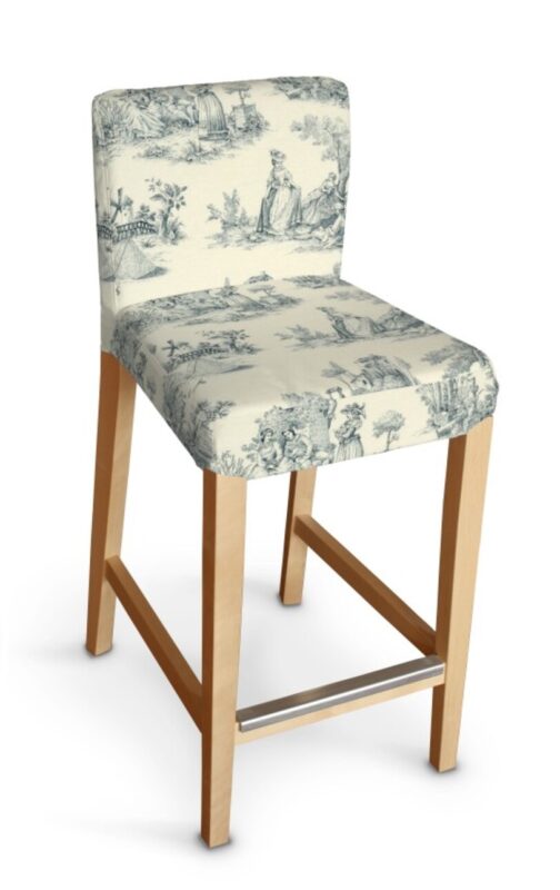 Návlek na barovú stoličku Henriksdal, krátky, modrý vzor na svetlobéžovom podklade, návlek na barovú stoličku Hendriksdal, Avinon, 132-66