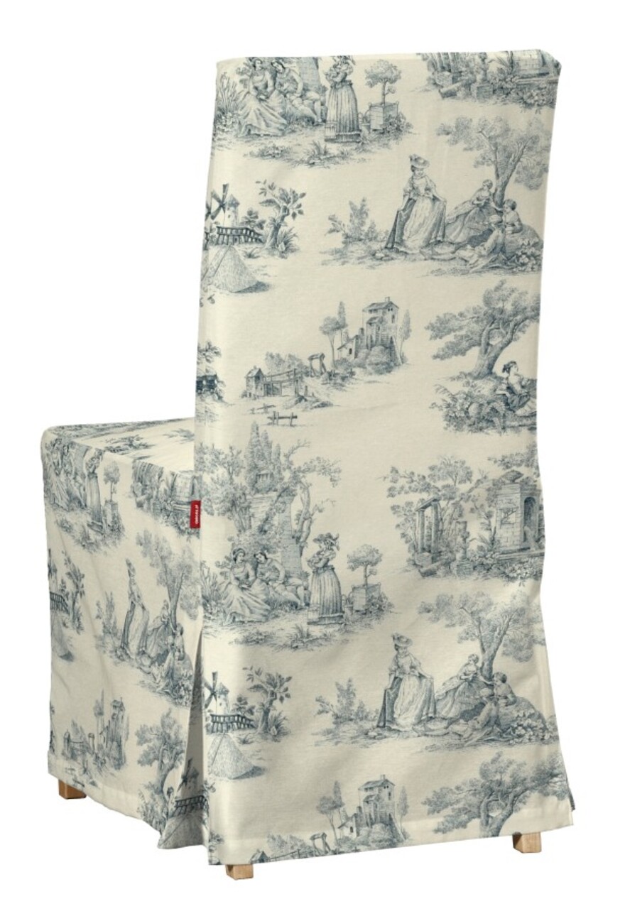 Návlek na stoličku Henriksdal (dlhý), modrý vzor na svetlobéžovom podklade, návlek na stoličku Henriksdal – dlhý, Avinon, 132-66