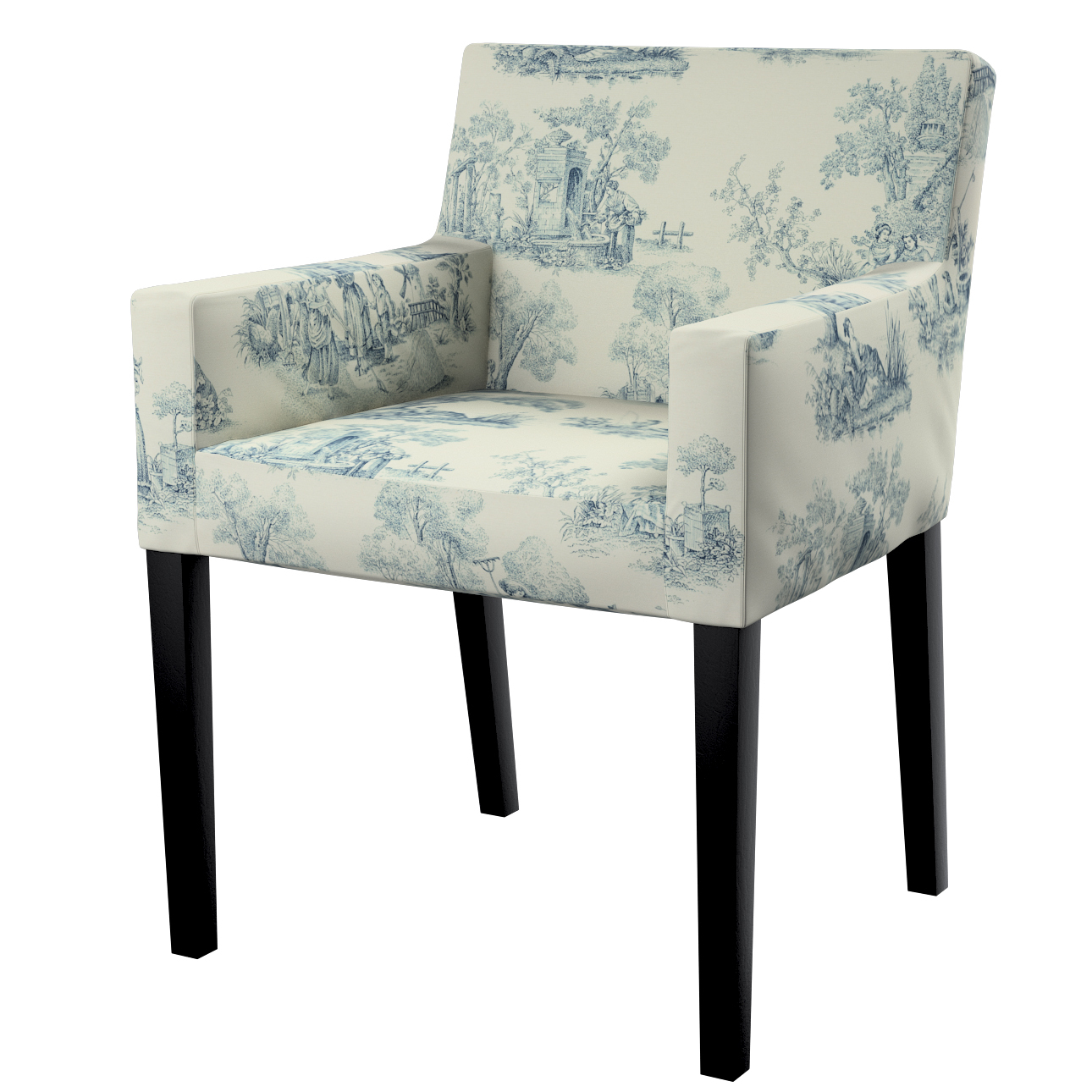 Návlek na stoličku s opierkami Nils, modrý vzor na svetlobéžovom podklade, návlek na stoličku Nils s opierkami, Avinon, 132-66