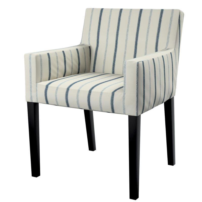 Návlek na stoličku s opierkami Nils, svetlo a tmavomodrý pásik na svetlobéžovom podklade, návlek na stoličku Nils s opierkami, Avinon, 129-66