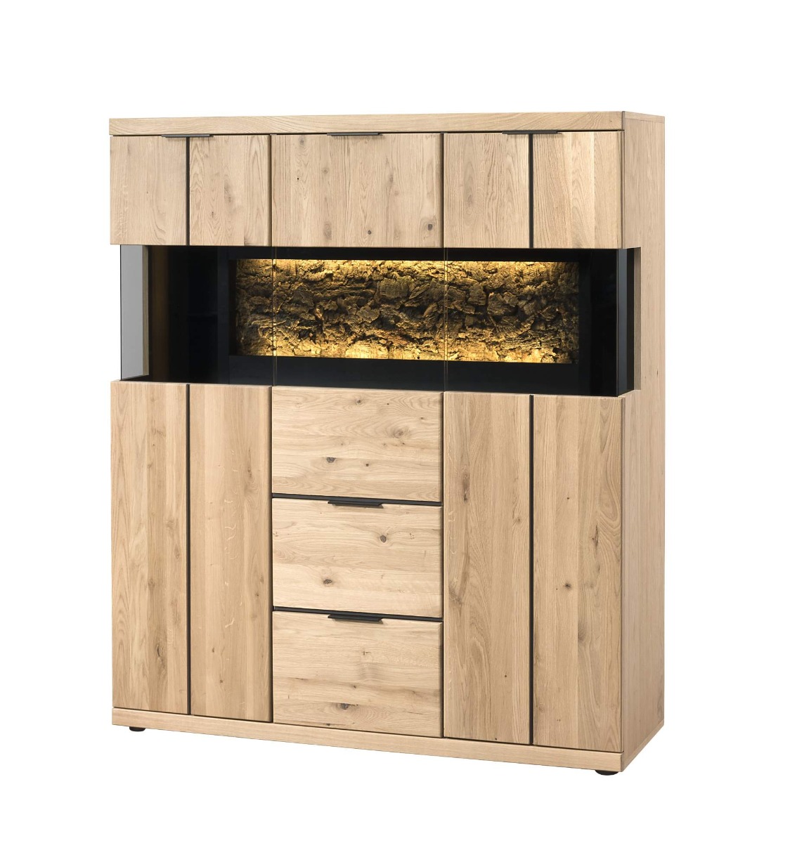 NEAPOL je elegantný a štýlový sektor vo farebnom prevedení dub bianco. Nábytok je vyrobený z kartáčovaného dubového masívu s tmavým sklom. Vonkajšia strana korpusu je vyrobená z kvalitnej dubovej dýhy. Vnútorná strana korpusu je vyrobená z LTD dosky, ktorá je nenáročná na údržbu.Police sú z tmavého dymového skla a dubovej dýhy. Pánty sú vybavené systémom pomalého zatvárania. Úchytky sú vyrobené z kovu, v čiernej farbe. Nábytok disponuje okrúhlymi plastovými nožičkami, ktorú sú v čiernom prevedení. Povrchová úprava olejom bianco zvýrazňuje krásnu štruktúru dreva, pričom poskytuje dlhodobú ochranu voči opotrebovaniu.Komoda je kombinovaná, trojdverová. V strednej časti sa nachádzajú dve praktické zásuvky. Dvierka sú presklené. Farebné prevedenie: dub bianco.Rozmery (š,v,h): šírka: 121 cmvýška:143 cmhĺbka: 42 cmV našej ponuke nájdete aj ďalšie prvky sektoru NEAPOL.