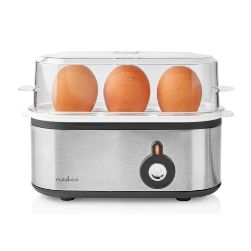 S týmto varným prístrojom na vajcia Nedis môžete ľahko pripraviť vajcia natvrdo, na mäkko alebo na hniličku – ideálne aj pre hektické rána alebo pre začiatočníkov v kuchyni. Stačí pridať správne množstvo vody pomocou dodanej kanvice a prepichnúť každé vajce integrovaným prepichovačom, aby sa zabránilo prasknutiu počas varenia.Varenica je navrhnutá na varenie až 3 vajec naraz a automaticky sleduje čas a teplotu, takže počas varenia môžete robiť iné veci. Už žiadne prevarené vajcia a sivasto-zelený žĺtok. S touto varenica si môžete pripraviť vajcia presne podľa vašich predstáv – či už na mäkko, na tvrdo alebo na hniličku.Varenica je kompaktná a má vysoko kvalitnú nerezovú konštrukciu, čo uľahčuje jej skladovanie. Hlasný bzučiak vás upozorní, keď sú vajcia hotové. Nezbytné elektrické súčasti, ako je viečko a stojan, nie sú však vhodné do umývačky riadu.Obsah balenia: