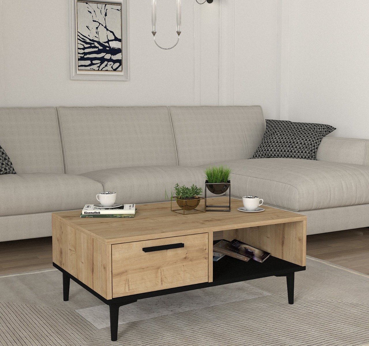 Dizajnový konferenčný stolík NEFET oživí nejednu obývačku. Jednoduché tvary pôsobia minimalisticky a zároveň moderne aj vďaka čiernym nožičkám. Stolík ponúka dostatok odkladacieho priestoru na uloženie časopisov, kníh alebo iných predmetov, ktoré chcete mať po ruke a to vo forme odkladacej police alebo praktickej zásuvky.Materiál: odolné 18 mm LTD hranené PVC páskouFarebné prevedenie: sapphire / čiernaRozmery: š90 x h60 x v23,2 cmDodávame v demonte.