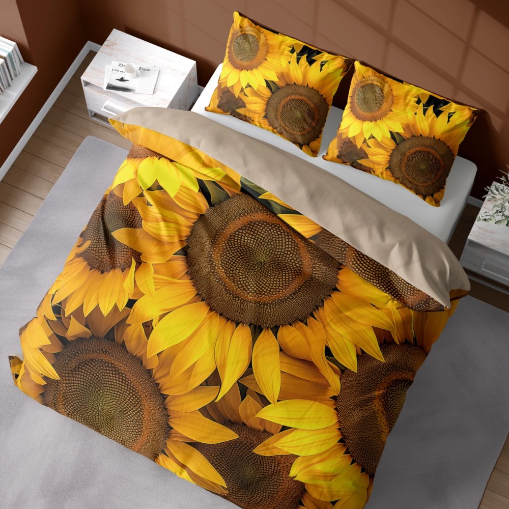 Nekrčivé posteľné obliečky so slnečnicami z mikrovlákna 3 časti: 1ks 200×220 + 2ks 70×80