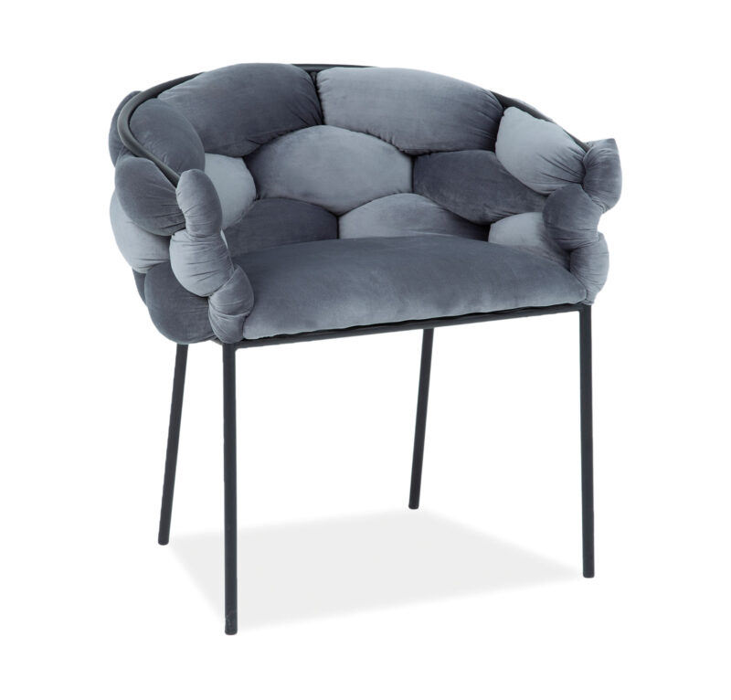 Čalúnená jedálenská stolička NESTOR je v atraktívnom a modernom prevedení. Je vhodná do rôznych typov interiérov.Sedák s opierkou sú očalúnené kvalitnou zamatovou látkou Bluvel 14 v svetlošedej farbe. Konštrukcia stoličky je vyrobená z kovu v čiernej farbe.Rozmery:Celková výška stoličky:75 cmVýška sedáku: 51 cmHĺbka sedáku: 40 cmCelková šírka sedáku: 76 cmŠírka sedáku: 50 cmDodávame v demontovanom stave.