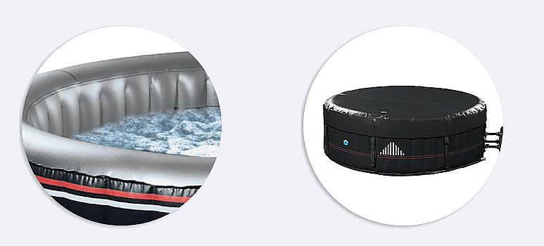 Nadčasová čierno-strieborná nafukovacia vírivka Montana s obsahom 930 litrov pre príjemnú relaxáciu až 6 osôb je lákavá rafinovaným tvarom, mimoriadnou pevnosťou a dostupnou cenou. Súčasťou okrúhle vírivky Montana je motor s funkciou automatického ohrevu, masáže a tiež filtrácia. Ďalším pozitívom je ultra odolná vonkajšia vrstva laminovaného PVC, povrch imitujúci kožu a vnútorná vložka s efektom Pearl PVC. O luxusnú masáž sa postará 140 vzduchových trysiek. Už sa len ponoriť do bublinkového kúpeľa a vaša relaxačná chvíľka môže začať!
