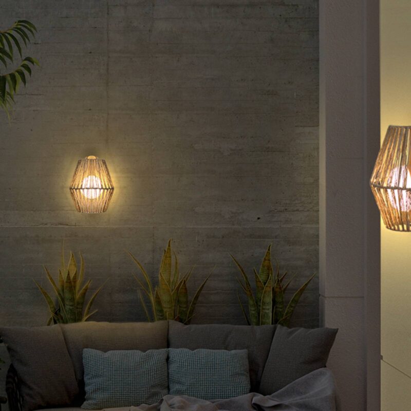 Stmievateľné LED vonkajšie nástenné svietidlo Sisine s dobíjacou žiarovkou Vďaka otvorene navrhnutému tienidlu z morskej trávy prináša vonkajšie nástenné svietidlo LED Sisine do okolia krásny prírodný nádych. Teplé svetlo vytvára útulnú a príjemnú atmosféru aj na balkóne, terase alebo dokonca vo vstupnom priestore. Nástenné svietidlo je možné používať aj v interiéri. Pomocou priloženého diaľkového ovládača možno nastaviť jas. Mimoriadne praktické: Lampu možno pohodlne nabíjať pomocou kábla USB, čo znamená, že Sisine možno flexibilne umiestniť. Priame pripojenie na napájanie nie je potrebné. – vrátane diaľkového ovládania a kábla USB – Doba svietenia až 20 hodín – Čas nabíjania 4-6 hodín