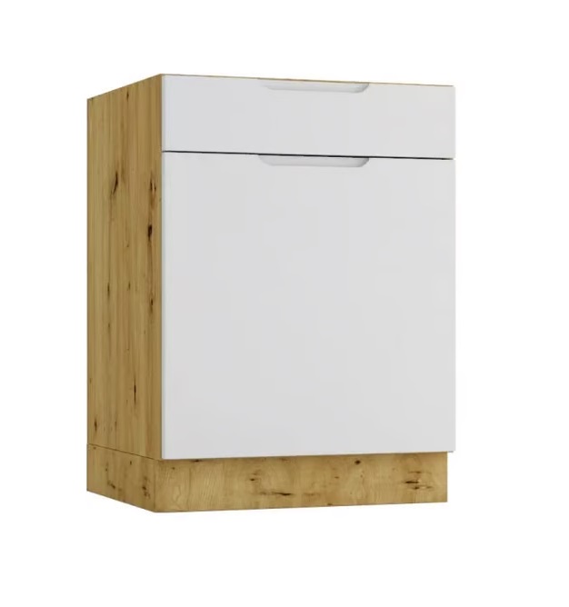 NIKOLE je jedinečný kuchynský nábytok, ktorý spája funkčnosť so štýlovým prevedením. Nábytok NIKOLE dodá každému priestoru osobitý charakter a zapadne do moderných a minimalistitkých interiérov..Nábytkové dosky sú vyrobené z LTD dosky o hrúbke 16 mm. Je nenáročná na údržbu, zaručuje trvácnosť a odolnosť. Nábytok disponuje nastaviteľnými nožičkami. Úchytky sú plastové.Rozmery skrinky (š,v,h): 60 x 82 x 44,6 cm.Farebné prevedenie: dub Artisan / svetlošedá.Kuchynský nábytok NIKOLE sa skladá z viacerých prvkov, vďaka ktorým si vyskladáte kuchyňu podľa vašich potrieb a predstáv.Dodávame v demontovanom stave.