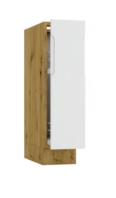 NIKOLE je jedinečný kuchynský nábytok, ktorý spája funkčnosť so štýlovým prevedením. Nábytok NIKOLE dodá každému priestoru osobitý charakter a zapadne do moderných a minimalistitkých interiérov..Nábytkové dosky sú vyrobené z LTD dosky o hrúbke 16 mm. Je nenáročná na údržbu, zaručuje trvácnosť a odolnosť. Nábytok disponuje nastaviteľnými nožičkami. Úchytky sú plastové.Rozmery skrinky (š,v,h): 15 x 82 x 51 cm.Farebné prevedenie: dub Artisan / svetlošedá.Kuchynský nábytok NIKOLE sa skladá z viacerých prvkov, vďaka ktorým si vyskladáte kuchyňu podľa vašich potrieb a predstáv.Dodávame v demontovanom stave.