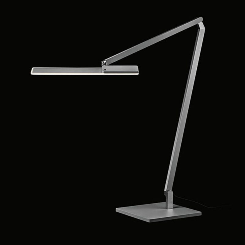 Kĺbová stolová LED lampa Roxxane Office s bezdotykovým ovládaním Nová stolová LED lampa Roxxane Office má tú zvláštnu vlastnosť, že jej zdroj svetla nie je obmedzený na obdĺžnikový štvorec. Hlava má predĺžený nástavec, ktorý prakticky poskytuje väčšiu svetelnú plochu na stole. Energeticky úsporné LED diódy s vysokou svietivosťou a vysokým podaním farieb zabezpečujú ideálne osvetlenie pracovného miesta a zabudovaná polykarbonátová rozptylná doska poskytuje svetlo s nízkym oslnením. Roxxana Office New je vyrobená z práškovo lakovaného hliníka, ktorý možno individuálne prispôsobiť prevládajúcim požiadavkám pomocou niekoľkých závesov a 3D kĺbovej hlavy s uhlom 270°. Používateľsky prívetivé ovládanie gestami umožňuje nastavenie jasu a zapnutie a vypnutie stolnej lampy jednoduchým pohybom ruky nad hlavou lampy. Vďaka vynikajúcemu spracovaniu a vysokej kvalite stolová lampa hrdo nesie označenie „Made in Germany“.