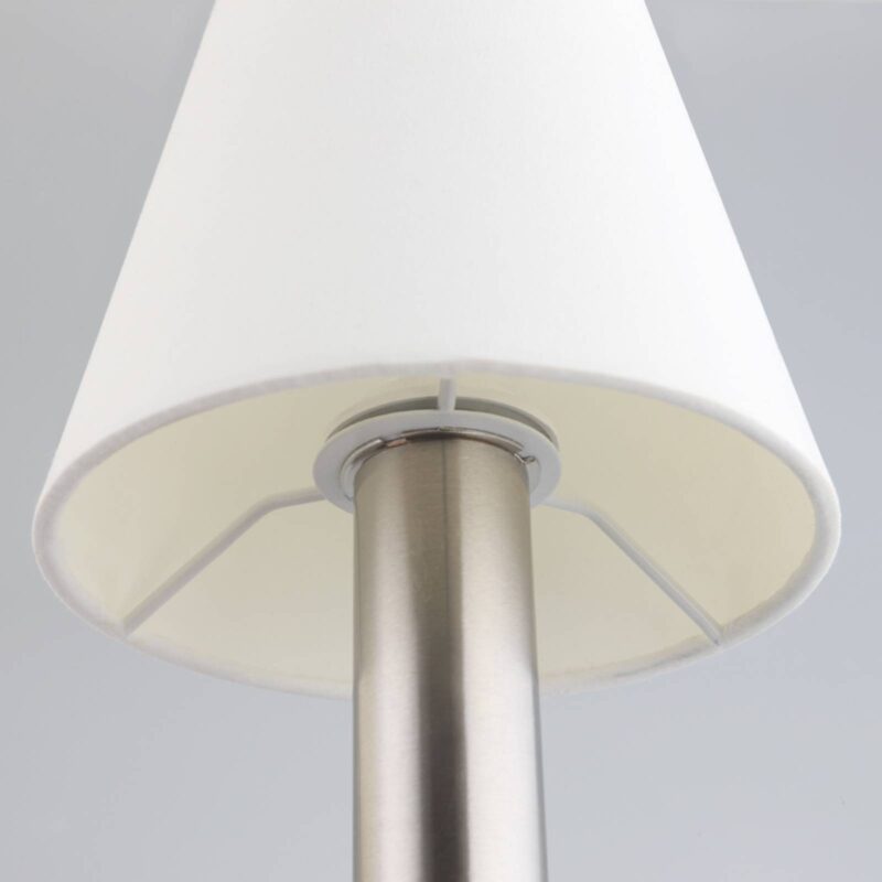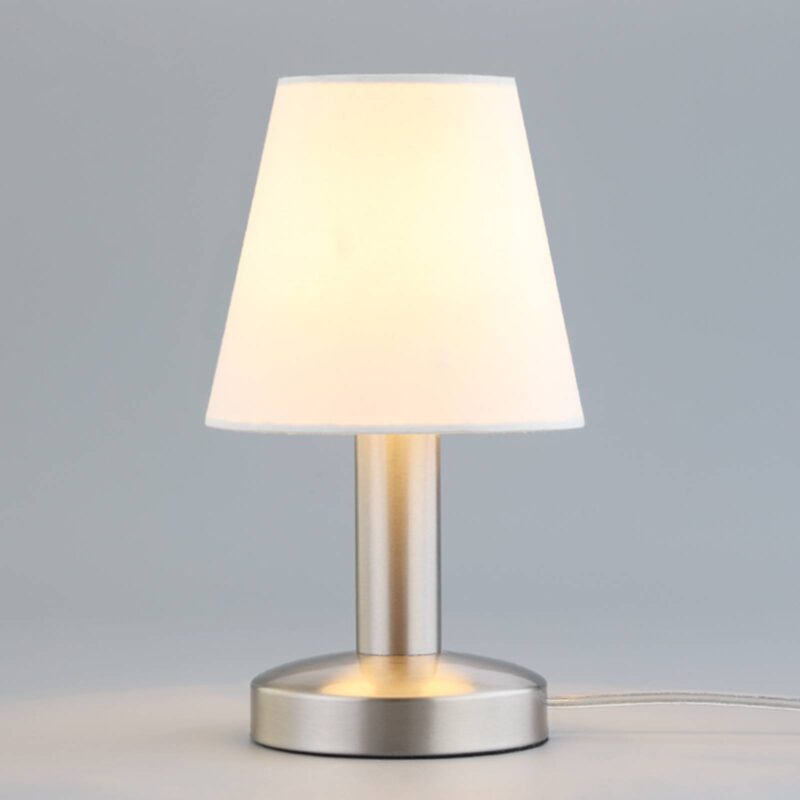 Nadčasová nočná lampa Hanno s bielym tienidlom Hanno sa hodí k mnohým nočným stolíkom, avšak táto nočná lampa sa neobmedzuje len na ne, pretože sa dá používať aj na iných miestach, napr. na parapete alebo dekoratívnej komode. Biele tienidlo vytvára veľmi príjemné svetlo s útulným charakterom a ako prídavné alebo zvýrazňujúce osvetlenie vo večerných hodinách je Hanno vždy dobrým odporúčaním. Svietidlo sa dá ľahko zapnúť a vypnúť pomocou dotykovej funkcie.