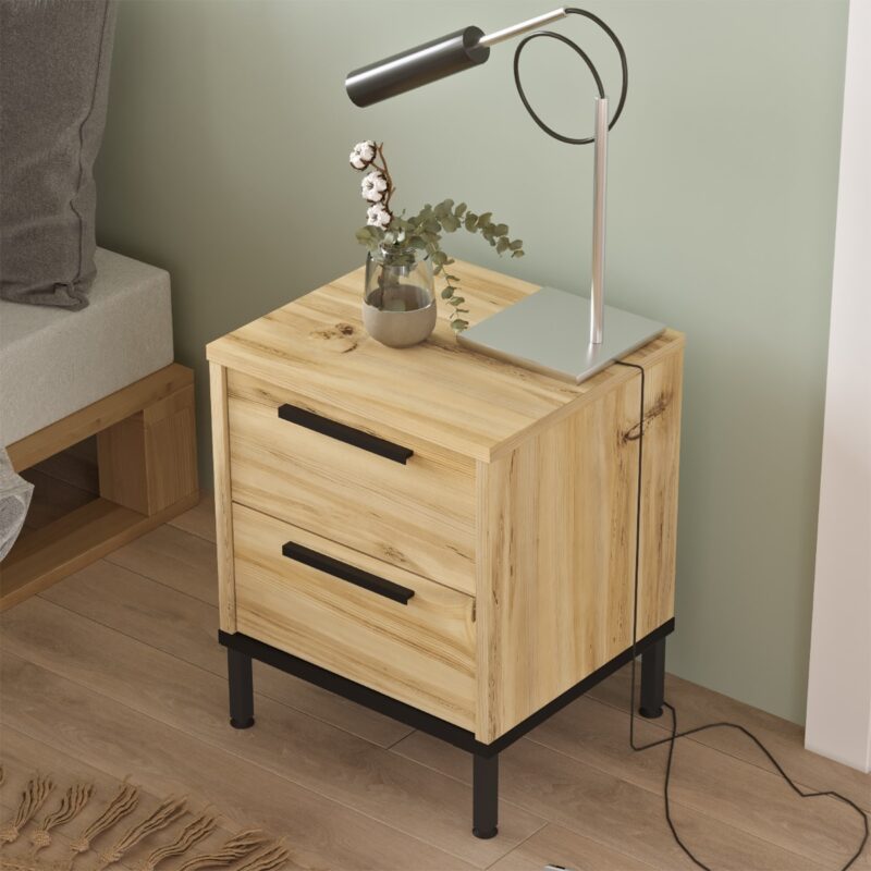 LEVY 24 – Nočný stolík pre Vašu spálňuDesign a Kvalita: Predstavujeme Vám LEVY 24, elegantný nočný stolík, ktorý je dokonalým doplnkom pre každú spálňu. Vyrobený z kvalitného LTD v odtieni dub Left a dokončený čiernym kovom, tento stolík je nielen krásny, ale aj odolný a dlhotrvajúci.Rozmery a Funkcie: So svojimi kompaktnými rozmermi 40 x 35 x 49 cm, LEVY 24 je ideálny do akéhokoľvek priestoru. Vybavený dvoma zásuvkami, ponúka dostatok úložného priestoru pre vaše knihy, ovládače a iné nočné potreby.Typ tovaru: Nočný stolíkMateriál: LTD a kovFarba: Dub Left + čiernaVybavenie: 2 zásuvkyInvestujte do kvality a štýlu s nočným stolíkom LEVY 24 a obohaťte svoju spálňu o eleganciu a funkčnosť.Dodávame v demonte.
