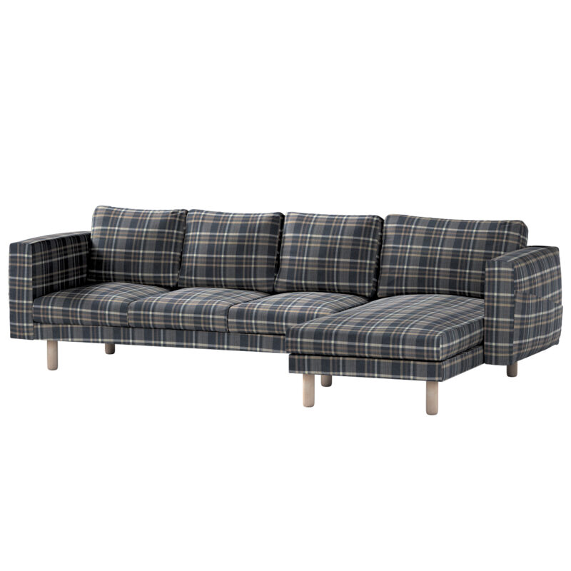 Norsborg poťah na sedačku s ležadlom – 4 os., modro – béžové káro, 291 x 88/157 x 85 cm, Edinburg, 703-16