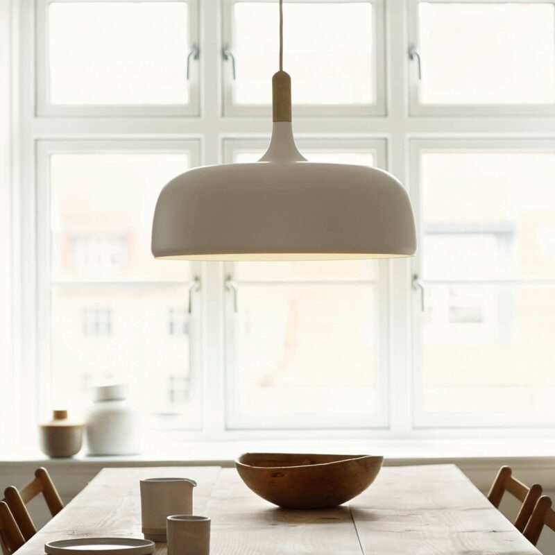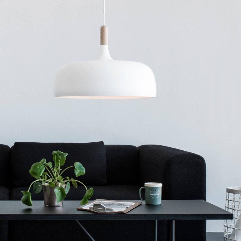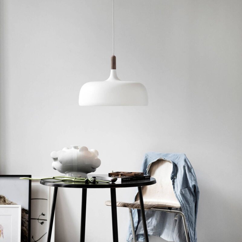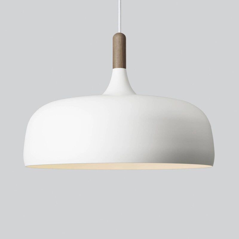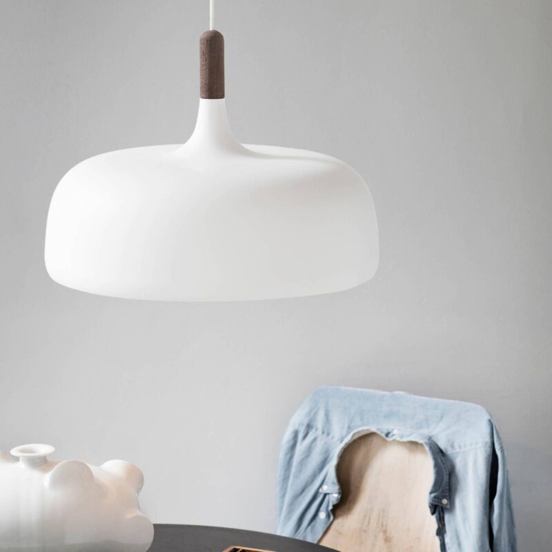 Závesné svietidlo s dizajnom žaluďa: harmonický škandinávsky štýl a priestranné osvetlenie Štýlové, moderné a špičkové svietidlo Acorn, ktoré Atle Tveit vytvoril v roku 2012. Odvtedy nadčasovo krásny žaluď nestratil nič zo svojej fascinácie. Dekoratívne tienidlo z lakovaného hliníka poskytuje vďaka svojej šírke veľkoplošné osvetlenie, napríklad stola. Vnútorná strana tienidla je lakovaná na bielo, aby optimálne odrážala svetlo. Špeciálny detail: na závese je dekoratívny drevený prvok, ktorý sa dá vymeniť, aby sa vzhľad optimálne prispôsobil ostatnému nábytku. Dodáva sa drevený dekor vo farbe svetlý buk a tmavý orech.