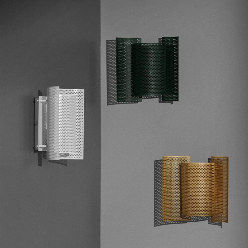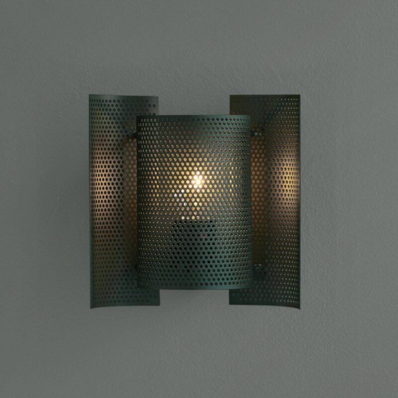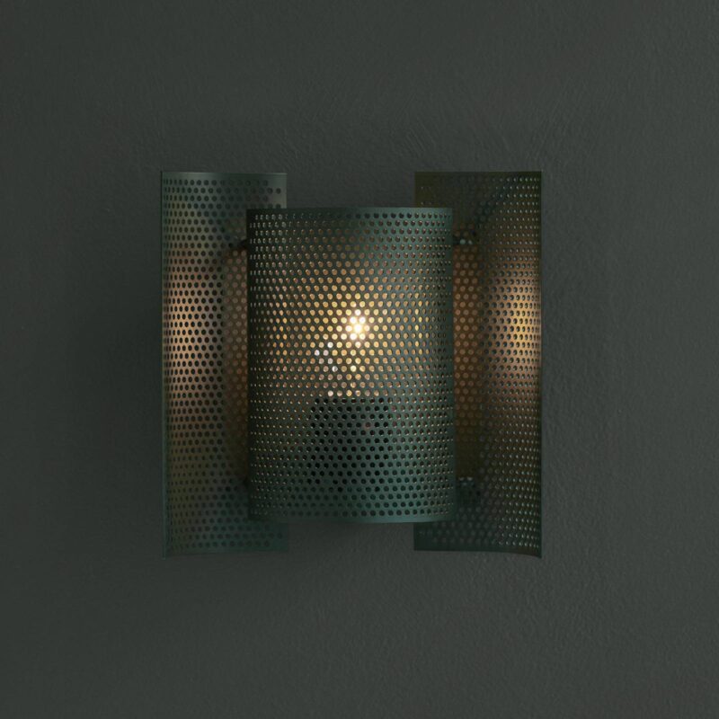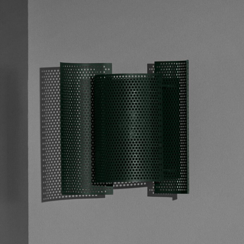 Okrídlený tvar a jedinečná difúzia svetla – nástenné svietidlo Butterfly perforované v tmavozelenej farbe Farba malej nástennej lampy je veľmi moderná, rovnako ako jej vzhľad. Napriek tomu pôvod dizajnu perforovanej nástennej lampy Butterfly pochádza zo 60. rokov, čo z nej robí nadčasový svetelný objekt, ktorého fascinácia pretrvala aj v priebehu rokov. Existuje iba jedna inovácia originálu, ktorú je možné nájsť tu v materiáli. Prekrývajúce sa kovové časti nástenného svietidla sú perforované a ponúkajú tak veľmi modernú verziu klasiky, ktorú je možné dokonale integrovať napríklad do konceptov zariaďovania v priemyselnom štýle. Nielen tam však môže byť malé nástenné svietidlo Butterfly perforované integrované aj do iných konceptov, či už jednotlivo alebo skupinovo. Svetelný efekt nástennej lampy je príjemne mäkký a cez perforáciu ponúka pôsobivú hru svetla a tieňa.