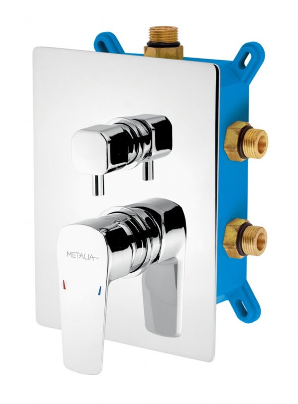 METALIA 58…viac než očakávate !!!DIZAJN – ÚSPORA – KOMFORT – INOVÁCIA sú 4 hlavné piliere vývoja novinky 2021.Česká kvalita – svetový dizajn. Nová rada batérií s inovatívnymi riešeniami umožňujú užívateľom väčší komfort obsluhy, šetria vodu a znižujú výdavky domácnosti.Servis až k vám domov. Kvalitná a odolná keramická kartuša KEROX 35 mm s predĺženou zárukou 7 rokov. Prvotriedne chrómové prevedenie. Vaňová a sprchová podomietková batéria s boxom a keramickým prepínačom pre 3 vývody. Box je dodávaný komplet vrátane krytu a ovládacej páky.(GT) Ean: 8590309089803