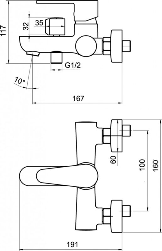 NOVASERVIS – Vaňová nástenná batéria Titania Fresh ECO, 100 mm, chróm 96025,0E