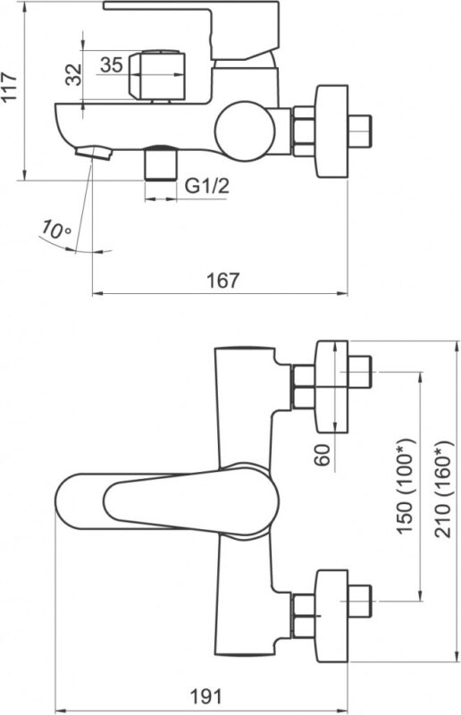NOVASERVIS – Vaňová nástenná batéria Titania Fresh ECO, 150 mm, chróm 96021,0E