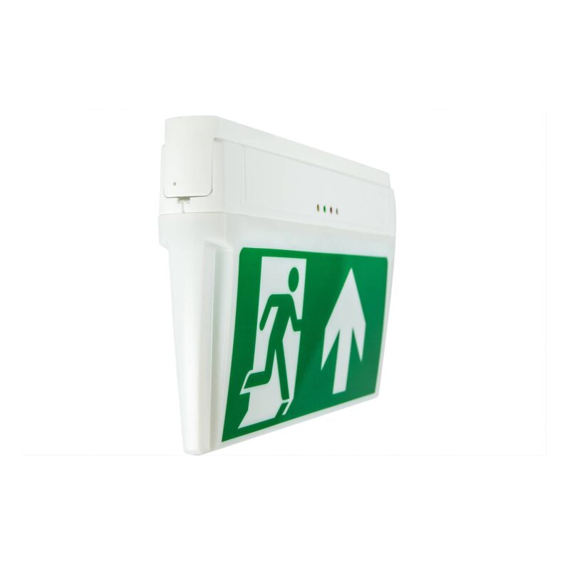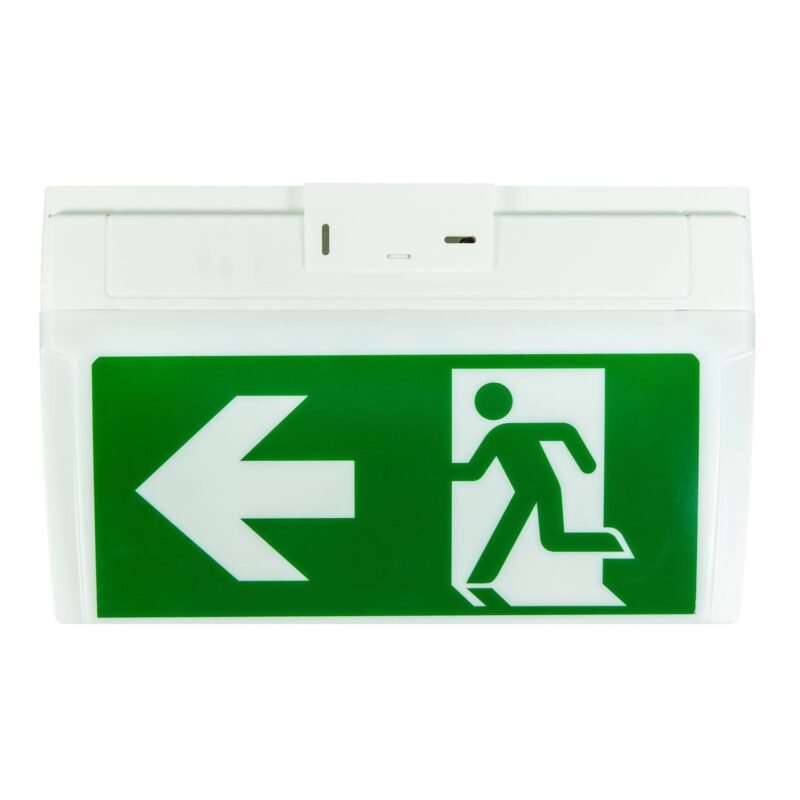 E-LUX Štandardné únikové svietidlo s rýchlomontážnym systémom Núdzové svietidlo E-LUX Standard s LED diódami SMD sa môže používať univerzálne v akejkoľvek verejnej budove. Má nepretržité spínanie a funkciu automatického vynulovania. Piktogramy z PET fólie sú samolepiace. Súčasťou je štandardná sada značiek (núdzový východ, úniková cesta vpravo, úniková cesta vľavo, úniková cesta rovno). Samotné svietidlo sa dá namontovať pomerne rýchlo a jednoducho vďaka montážnemu systému click. – Podľa noriem DIN EN 60598-2-22, EN 1838, EN 62034 a DIN VDE 0108 – automatická testovacia funkcia, signalizácia pomocou 3 farebných LED diód, testovacie tlačidlo súčasťou balenia – odolné voči nárazom, nerozbitné – Dosah detekcie: 22 metrov – Ni-MH 4,8 V / 0,6 Ah – Nástenná konzola na montáž vlajky, montážny rám na montáž na strop a závesná súprava na montáž na záves nie sú súčasťou dodávky (pozri príslušenstvo)