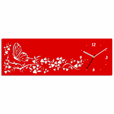 Obdĺžníkové nástenné hodiny v modernom dizajne červená