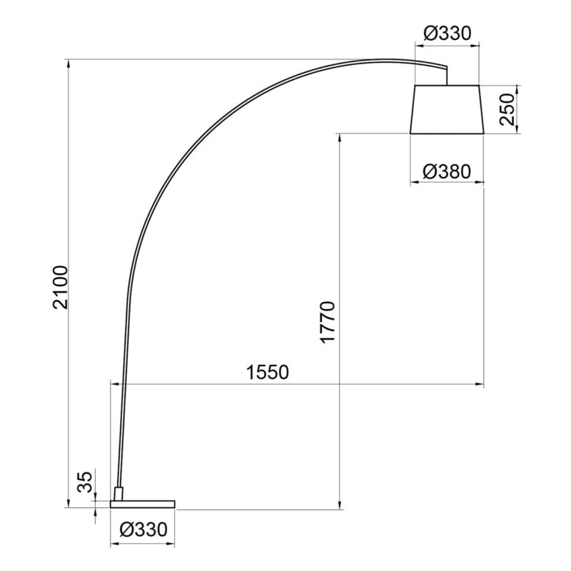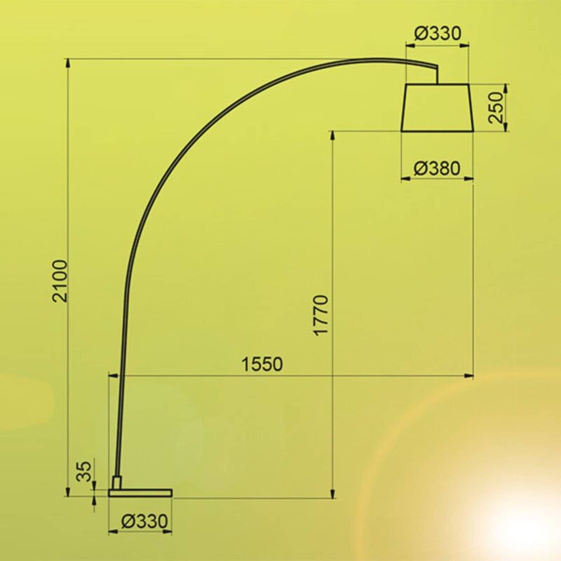Oblúková stojacia lampa opisuje veľký oblúk a poskytuje žiarivo krásne svetlo Oblúková stojacia lampa s projekciou 155 cm je ideálnou voľbou na atmosférické dodatočné osvetlenie vo väčších miestnostiach. Umiestnená v blízkosti sedacích plôch v obývacej izbe bez námahy dokáže osvetliť priestor na sedenie príjemným svetlom na veľkej ploche. Vďaka svojmu modernému tvaru a farebnému prevedeniu sa dá kombinovať so širokou škálou moderných štýlov nábytku. Vybavené je nožným spínačom na pohodlné ovládanie. Svetelný zdroj nie je súčasťou dodávky.