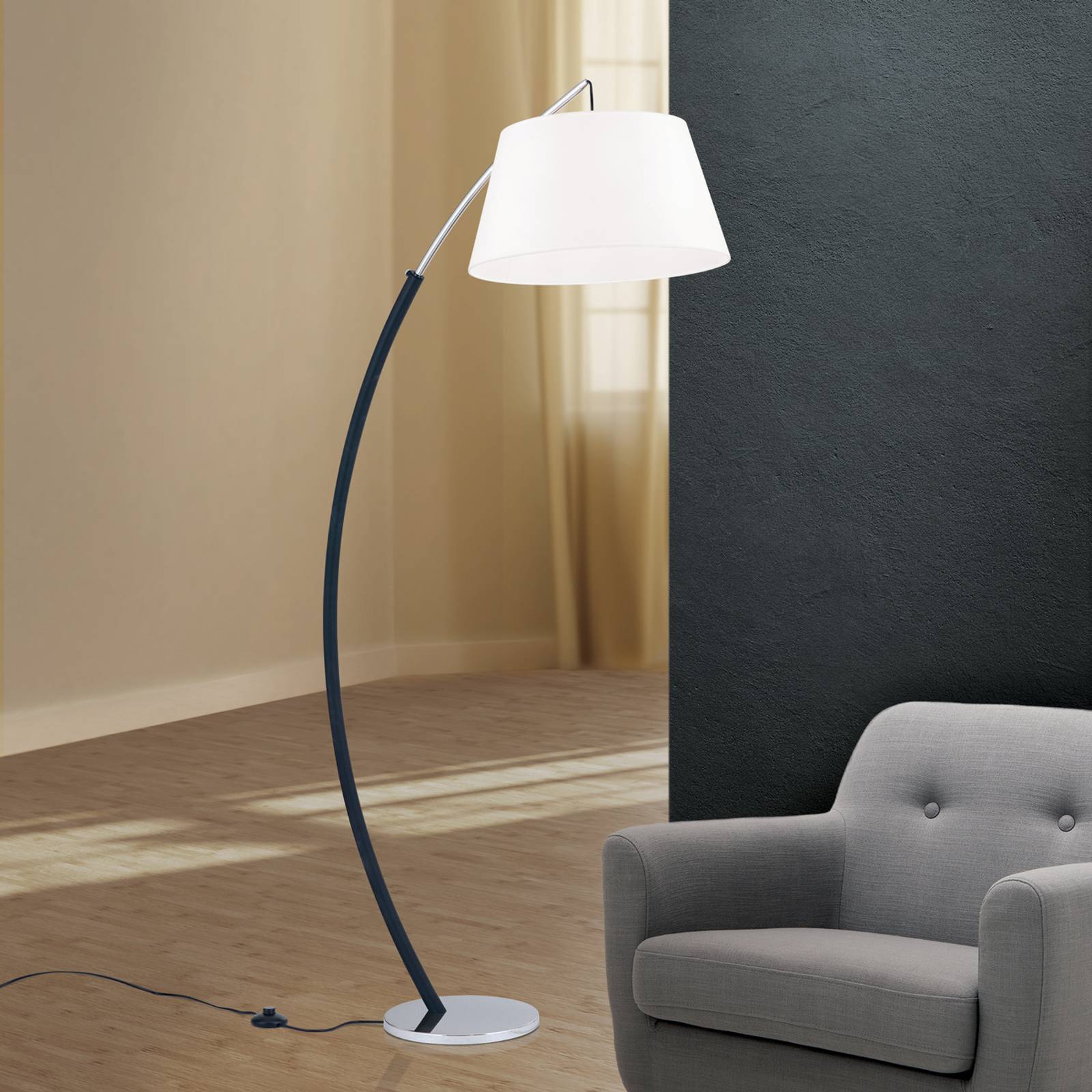 Oblúkové svietidlo Philipp látka chróm/čierna