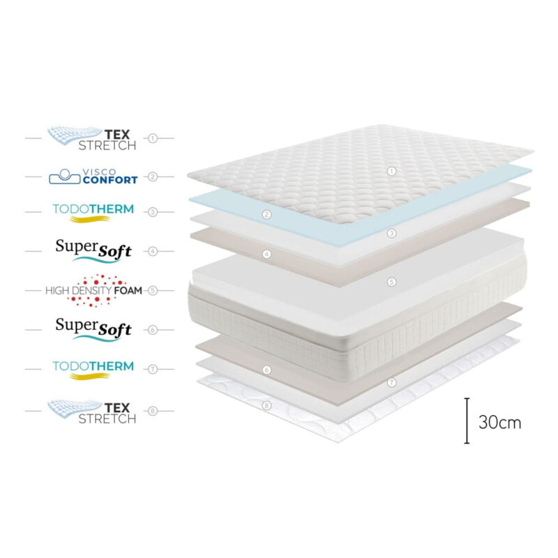 Kombinovaný systém viskoelastických a supermäkkých vrstiev spôsobuje rozloženie tlaku tela, čím sa dosahuje vynikajúci odpočinok. Tento matrac sa odporúča pre všetky typy ľudí, ktorí hľadajú priedušný matrac s dobrou prispôsobivosťou a dvojitou tvrdosťou. Okrem toho sa tento model vďaka svojim vlastnostiam odporúča pre dospelých aj starších ľudí.