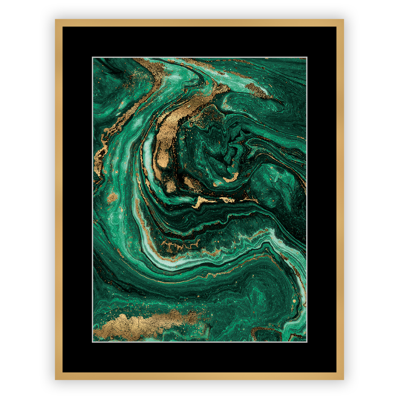 Originálny obraz predstavuje smaragdový mramor vyrobený technikou liatia. Priťahuje pozornosť svojím jedinečným tajomstvom a krásnymi farbami. Zdobené impozantným pozlátením a zarámovaným do zlatého rámu vytvára mimoriadne elegantnú stenu. Jeho tajomný charakter, podčiarknutý čiernym passe partoutom, bude ideálny pre štýlovú spálňu alebo obývaciu izbu. Vyzerá to skvele s druhým obrázkom z tej istej kolekcie Abstract Green&Gold II. Rozmery: šírka 40cm, výška 50cm Materiál: mdf / sklenená doska. Farba: zelená / čierna.