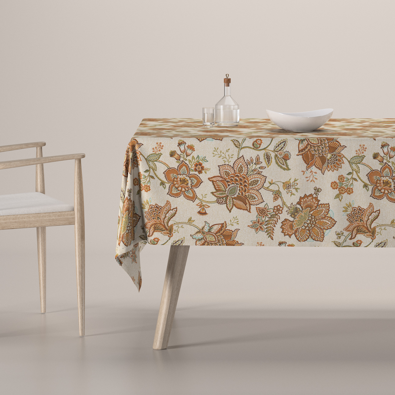 Obrus na stôl obdĺžnikový, béžové kvety, Intenso Premium, 144-27