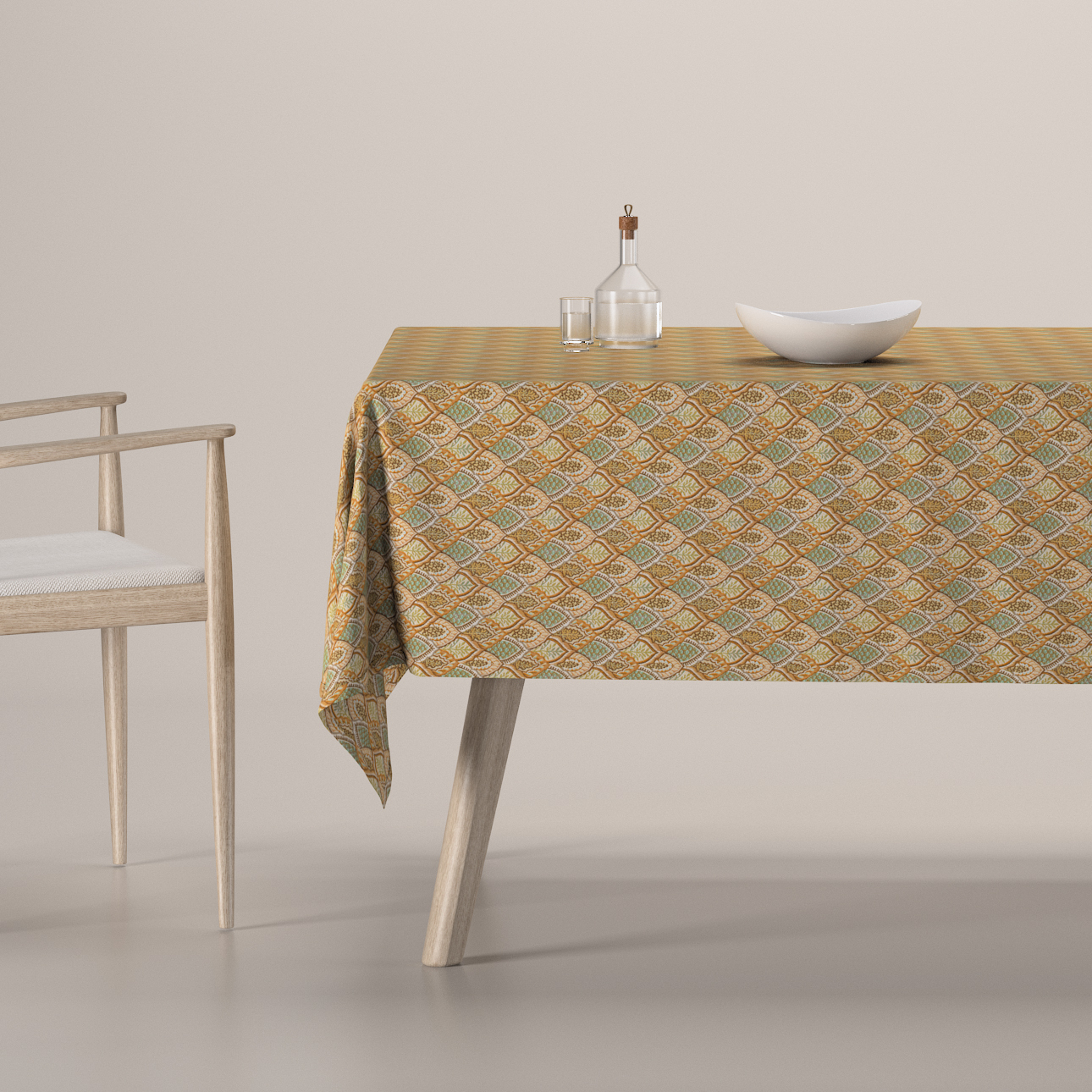Obrus na stôl obdĺžnikový, béžový a zelený kvetinový motív, Intenso Premium, 144-28