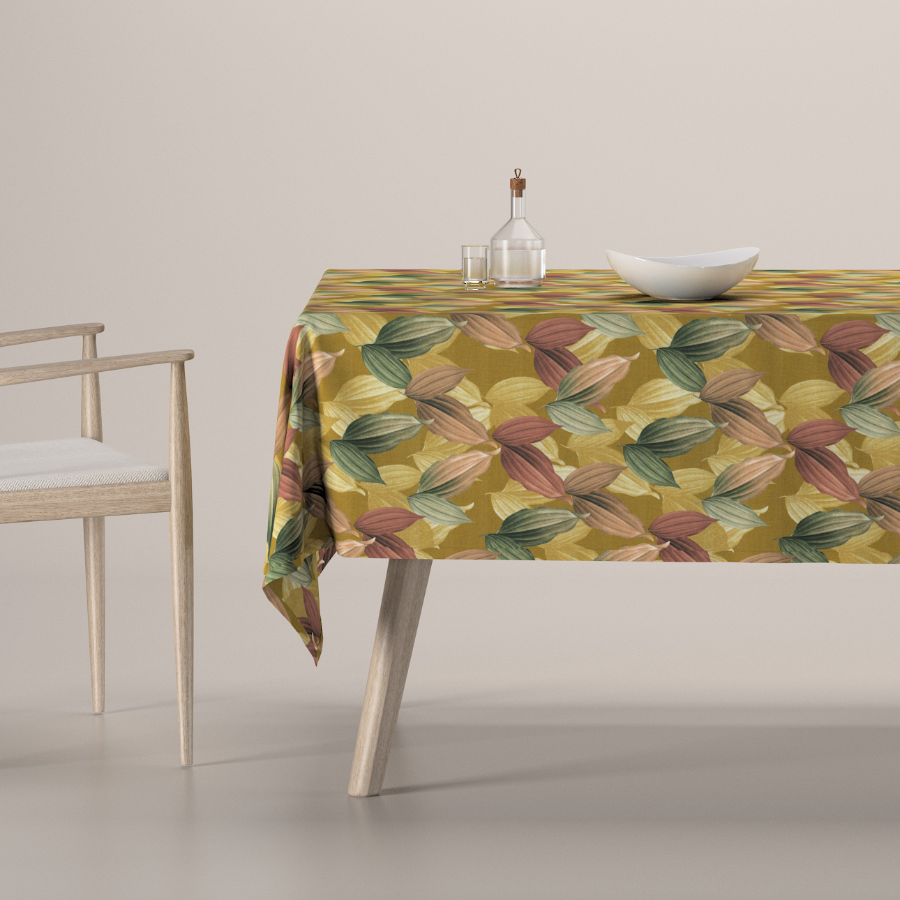 Obrus na stôl obdĺžnikový, farebné lístie na horčicovom podklade, Abigail, 143-22