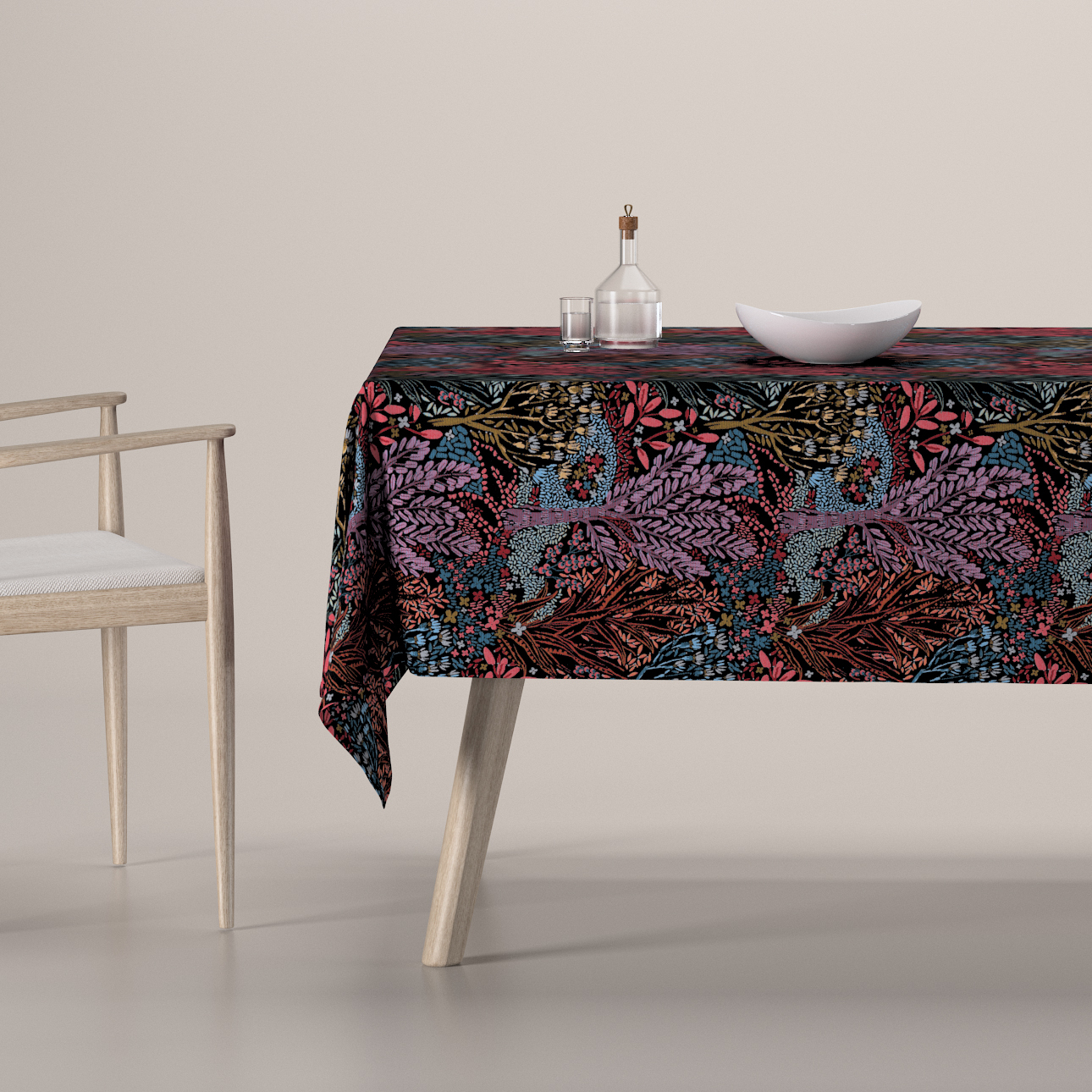 Obrus na stôl obdĺžnikový, farebný kvetinový motív na čiernom pozadí, Intenso Premium, 144-26