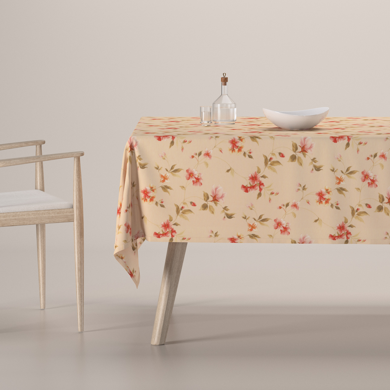 Obrus na stôl obdĺžnikový, jemané ružové kvety na svetlom ľanovom podklade, Londres, 143-88