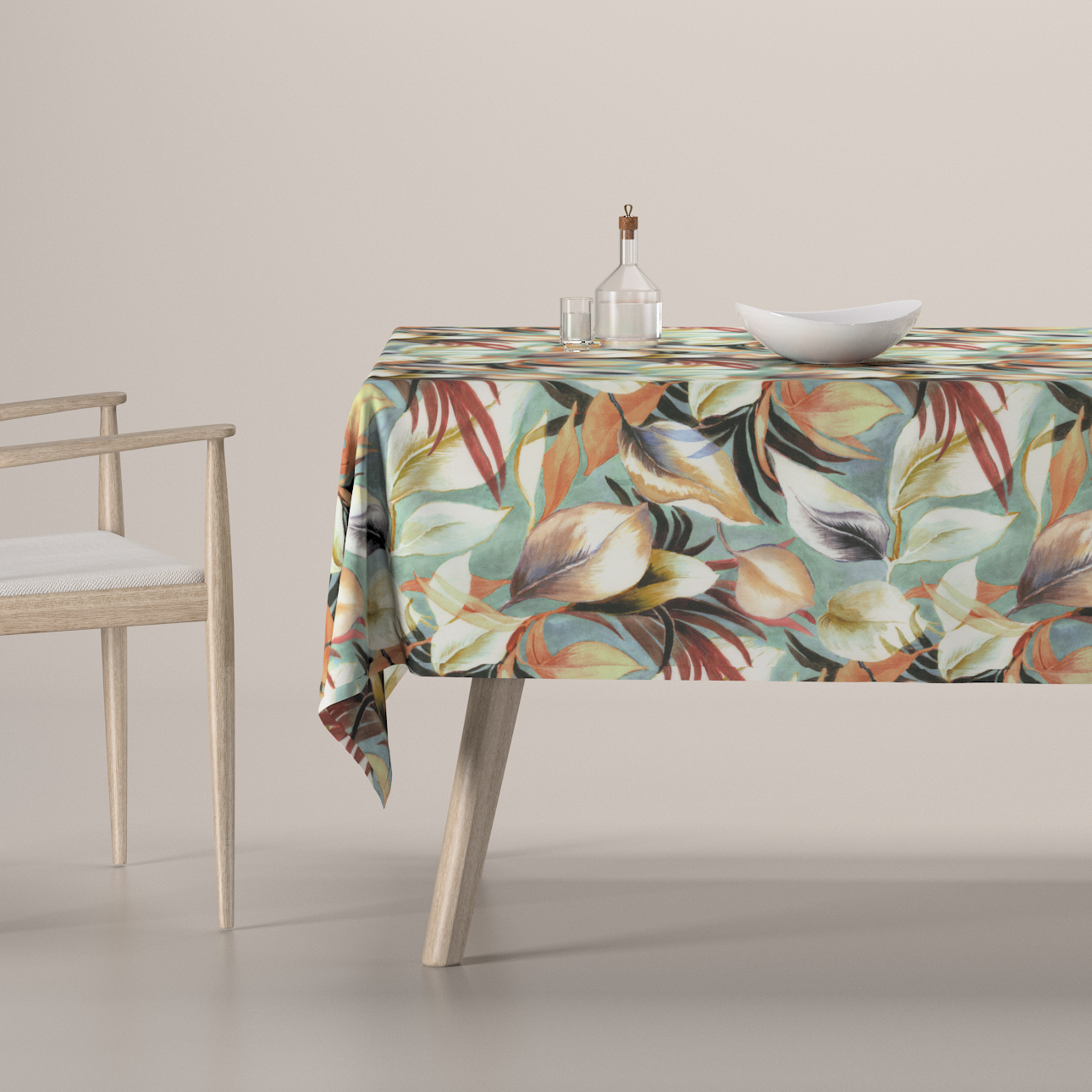 Obrus na stôl obdĺžnikový, oranžovo-gaštanovo-žlté listy na pozadí mäty, Abigail, 143-61