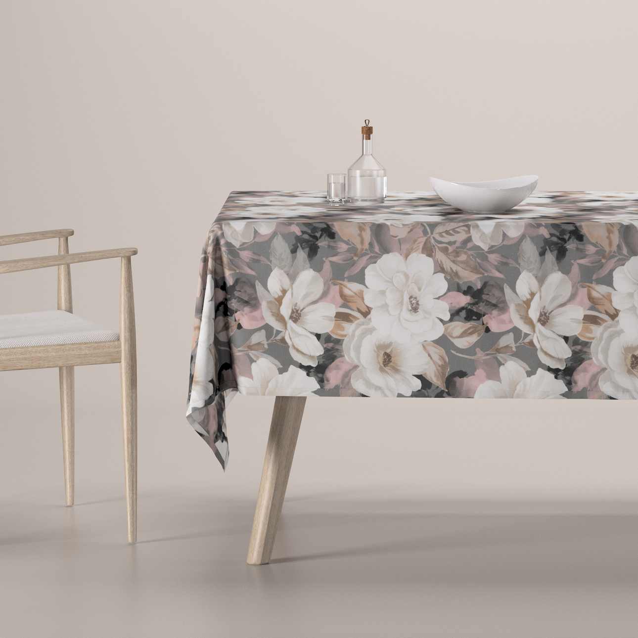 Obrus na stôl obdĺžnikový, svetlé kvety na sivom podklade so svetlo ružovou a béžovou, Gardenia, 142-13