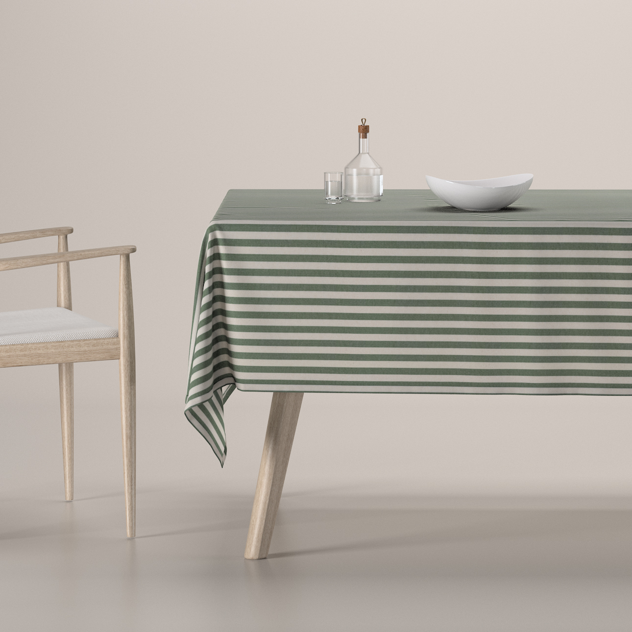 Obrus na stôl obdĺžnikový, zelené a biele pruhy (1,5 cm), Quadro, 144-35