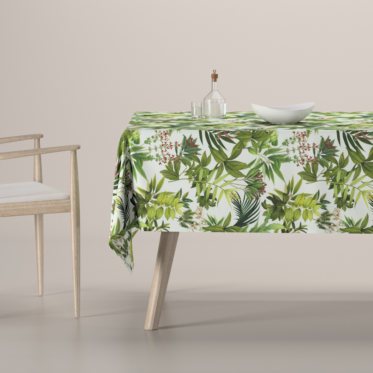 Obrus na stôl obdĺžnikový, zeleno – červené rastliny na bielom podklade, Tropical Island, 143-69