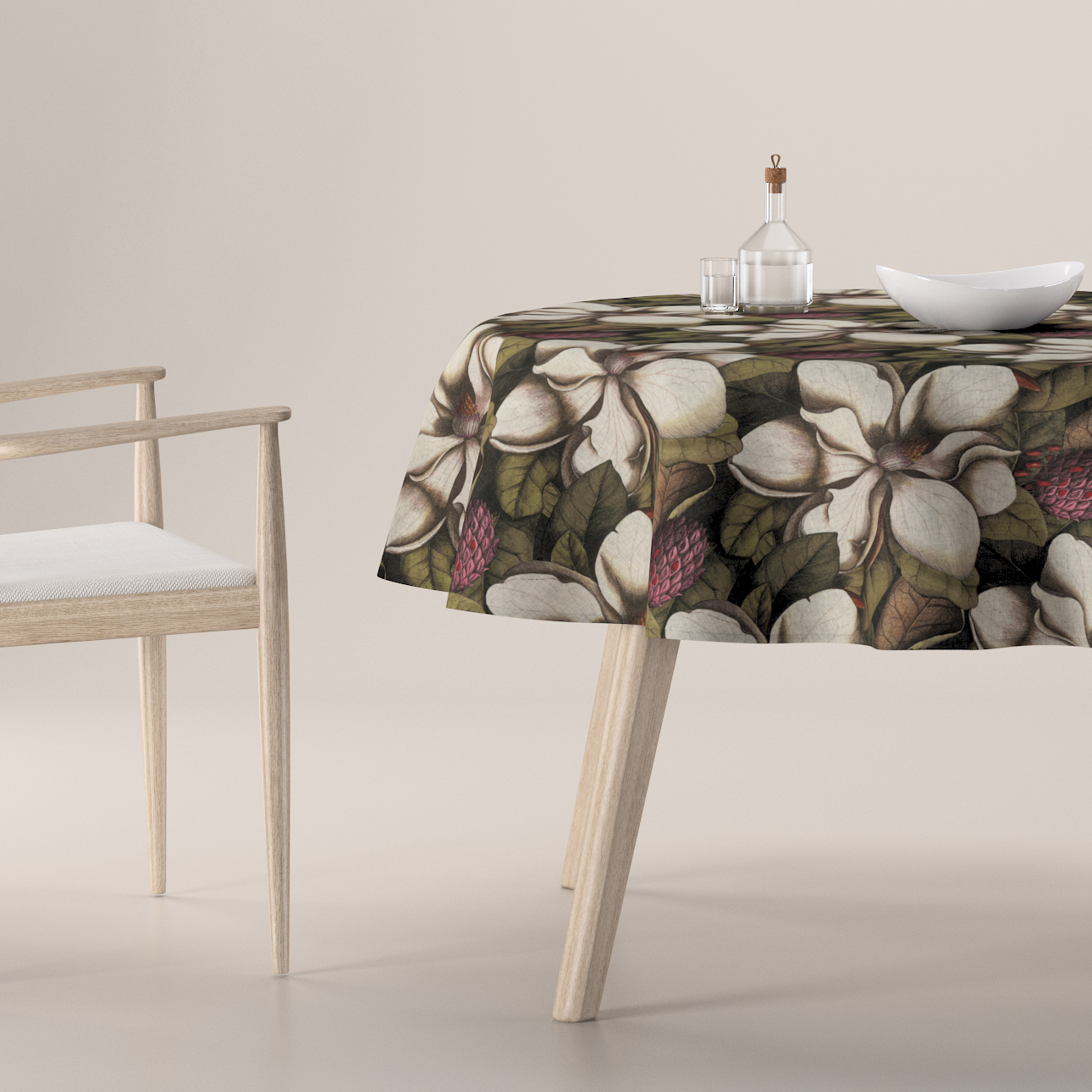 Obrus okrúhly, béžový a zelený kvetinový motív, Eden, 144-24