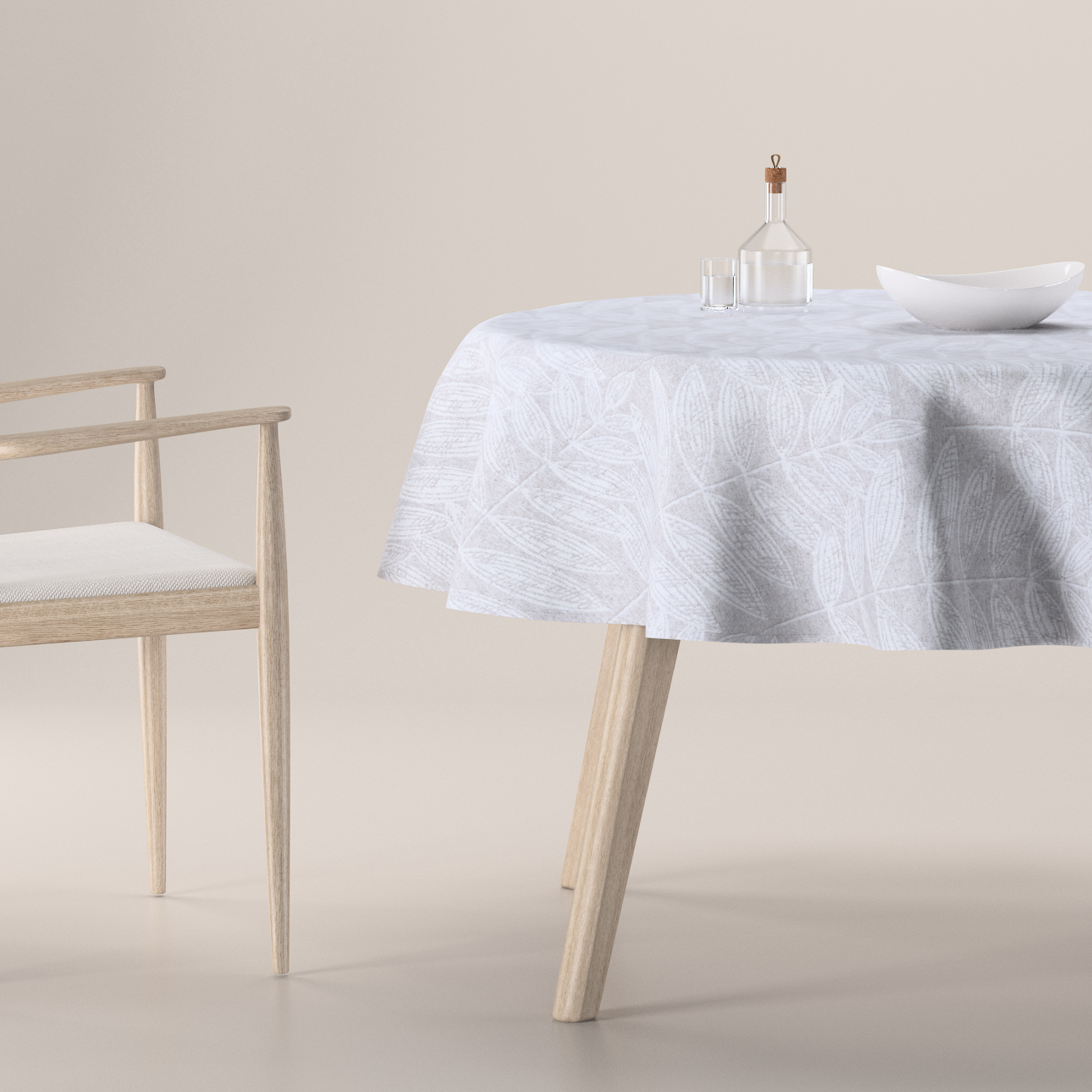Obrus okrúhly, biele listy na sivom podklade , Sunny, 143-84