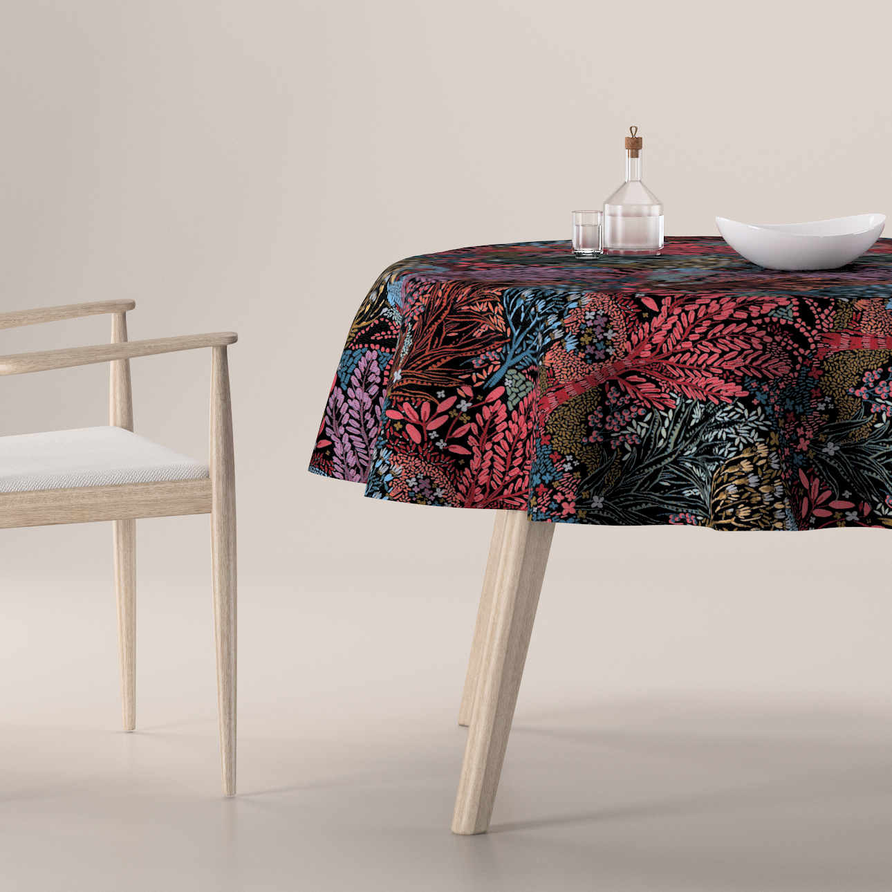 Obrus okrúhly, farebný kvetinový motív na čiernom pozadí, Intenso Premium, 144-26