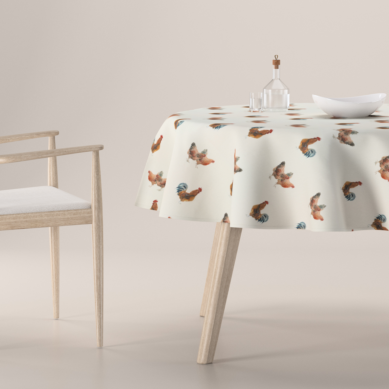 Obrus okrúhly, hnedé kohúty na krémovom podklade, Flowers, 141-80