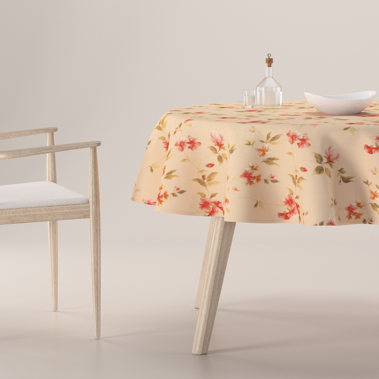 Obrus okrúhly, jemané ružové kvety na svetlom ľanovom podklade, Londres, 143-88