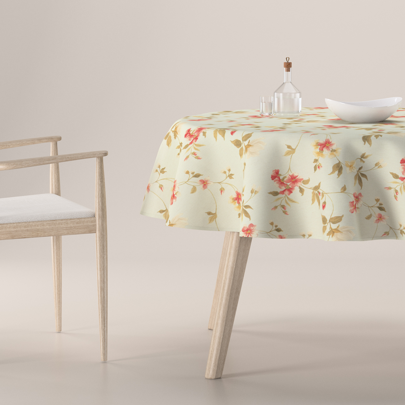 Obrus okrúhly, jemné ružovozelené kvety na zelenkavomodrom podklade, Londres, 143-89